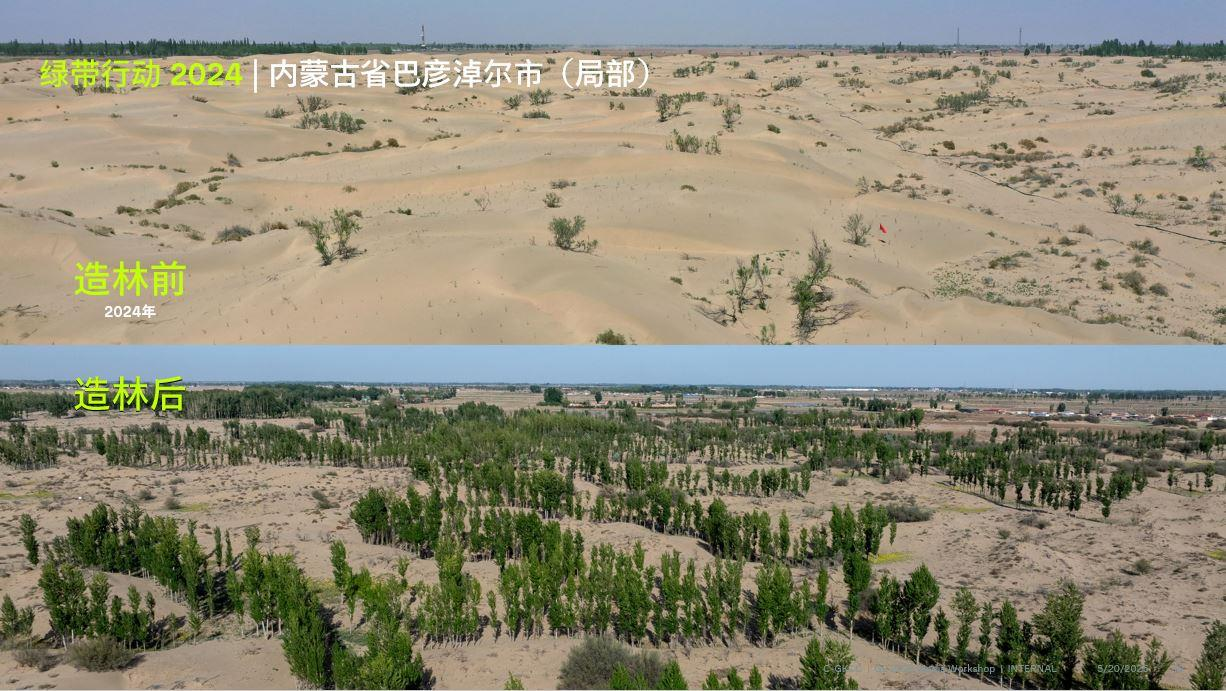 In 2024, the GREEN BELT project was implemented in Wulantuke Town, Bayannur, Inner Mongolia Autonomous Region. It planted over 850,000 locally suitable trees, including saxaul and Russian olive, contributing to ecological restoration and stabilizing 4 million square meters of scattered sand around local villages and farmlands. The project also helps block the inflow of sand into the river and safeguards the ecological security of the Yellow River’s “Great Bend.” While improving the local ecological environment, the project created 58,822 workdays, generating RMB 8.82 million in additional income for participating low-income communities. Once the trees mature, the project will also offer long-term benefits by enabling local communities to cultivate valuable medicinal plants such as Cistanche (Rou Cong Rong), further supporting local economic development and rural revitalization.